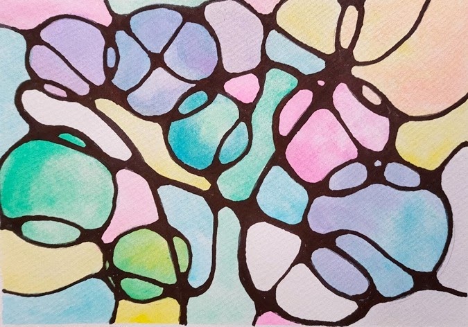 My friend Lisa in Bellingham, a teaching artist, taught me and some friends neurographic art recently. You make a few squiggles on a page, lines intersecting one another, then enhance the intersections. The result looks like a neural network. Then you color each segment in. In addition to being beautiful, the process has also been shown to calm the mind. It’s just the right percentage of structure/no structure to get the novice artist into a flow state. I thought this might be the perfect project to introduce to a group of fourth graders.